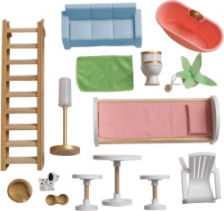 Gata de joacă pe loc – pat, canapea, cădiță, măsuțe, scaune și alte miniaturi pentru amenajarea realistă a fiecărei camere.