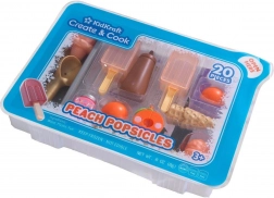 Descoperă distracția jocului de-a bucătarul cu setul KidKraft Create & Cook înghețate de piersică. Copiii își pot crea propriile înghețate pe băț și cornete cu înghețată, pot tăia felii de piersică, adăuga toppinguri și servi ca într-o cofetărie adevărată. Setul cu 20 de piese susține creativitatea, motricitatea fină și jocurile de rol, ideal pentru copii de la 3 ani.