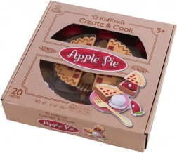 Acest set creativ de joacă transformă bucătăria copiilor într-o brutărie primitoare. Cei mici parcurg toți pașii preparării – de la tăierea merelor, la adăugarea condimentelor, până la asamblarea plăcintei și servirea ei. Cardul cu rețetă inclus, care funcționează și ca tocător, îi ghidează pe micii patiseri pas cu pas.