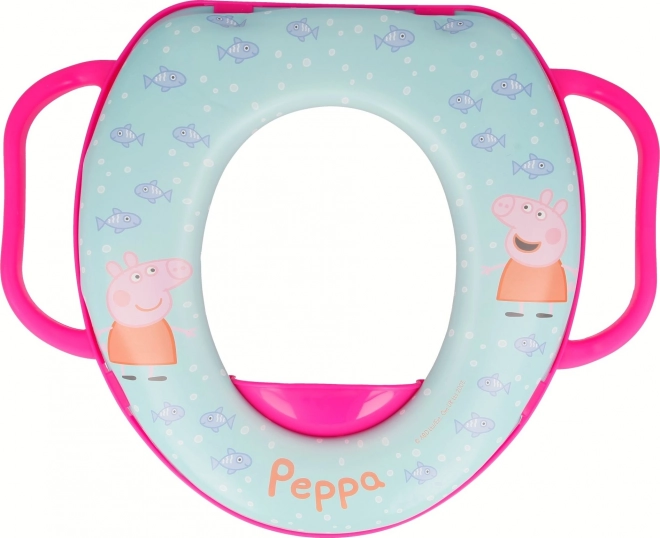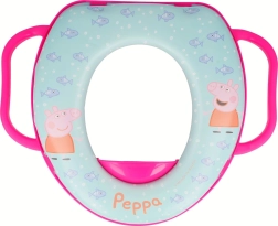 Șezut de toaletă pentru copii cu motivul PEPPA PIG ajută copiii mici să treacă în siguranță la folosirea toaletei pentru adulți. Șezutul este moale și confortabil, are mânere practice pentru o prindere sigură, este compatibil cu majoritatea WC-urilor și se curăță foarte ușor.