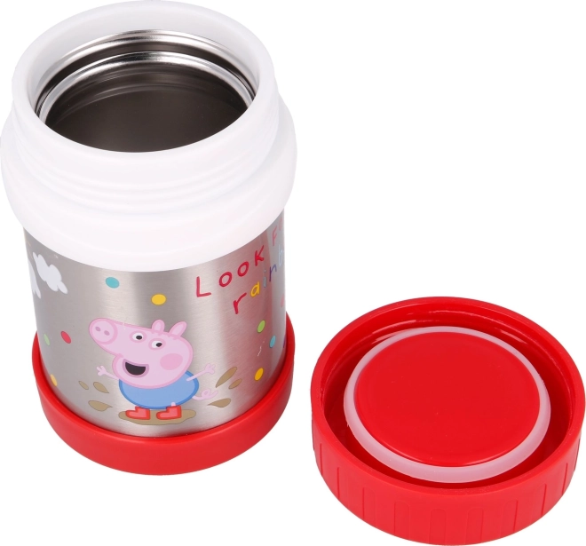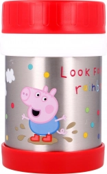 Termosul practic din oțel inoxidabil pentru mâncare, cu motivul vesel PEPA PIG, este perfect pentru supe, paste, preparate din legume sau carne, ori lapte cald. Datorită construcției de calitate, ajută la menținerea temperaturii preparatelor timp de câteva ore, fie că sunteți la școală, în excursie sau la locul de joacă.