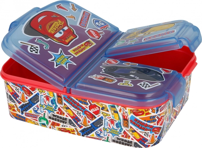 Vă prezentăm o cutie de gustare practică și stilată, care va atrage orice mic fan al filmului „Cars”. Este realizată din material durabil, rezistent la lovituri și căderi. Oferă trei compartimente separate, ideale pentru păstrarea diferitelor alimente separat, precum fructe, sandwich sau alte bunătăți. Designul cu personajele îndrăgite din filmul „Cars” va cuceri copiii.