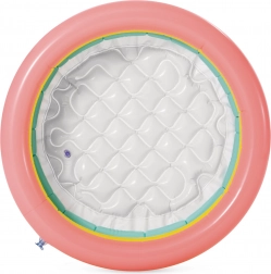 Oferiți copiilor dumneavoastră distracția la soare cu această piscină gonflabilă, care este ideală pentru jocurile de apă în aer liber. Piscina este fabricată din vinil durabil și este dotată cu trei inele în culori vesele. Cu un fund gonflabil moale, este confortabilă și sigură pentru copii, care vor adora să se bălăcească în apă.