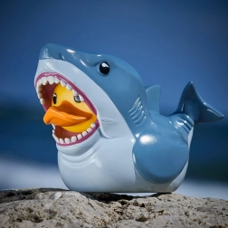 Rața în stil distractiv cu tema Bruce din Jaws oferă colecționarilor o piesă unică.