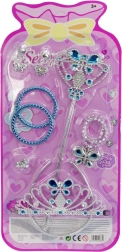 Acest set de prințesă este accesoriul perfect pentru micile iubitoare de basme. Datorită combinației dintre coroana, cerceii și brățările asortate în nuanțe de albastru, creează un aspect fermecător într-o clipă și susține jocul de rol creativ.