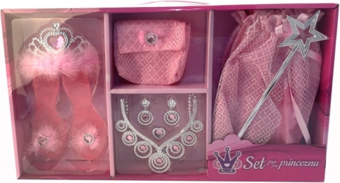 Intră în lumea basmelor cu un set fermecat pentru micile prințese! Conține fustiță, pantofiori, coroniță, poșetă, baghetă magică și bijuterii – totul pentru o transformare instantanee în prințesă și ore întregi de joc creativ.
