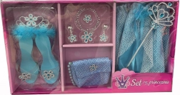 Împliniți visul fiecărei micuțe prințese cu acest set de prințesă în culoare albastră. Setul conține fustiță, pantofiori, coroană, poșetă, baghetă și bijuterii – tot ce este necesar pentru o joacă de-a prințesa de poveste.