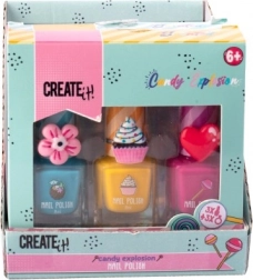 Acest set jucăuș de oje CREATE IT! aduce copiilor o lume a culorilor și a imaginației. Trei nuanțe intense (turcoaz, galben, roz) se aplică ușor, iar pensula mică este perfectă pentru unghiuțe. Fiecare ojă este completată de un ineluș tematic asortat cu designul sticluței – un plus de bucurie ca accesoriu pentru manichiura finală.