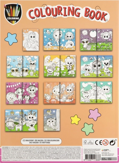 Carte de colorat veselă pentru copii, cu ochi mobili, aduce distracție creativă pentru cei mici. Conține 10 foi în format 19,5 × 27 cm și este disponibilă în 2 modele, în funcție de stoc. Potrivită pentru copii de la 3 ani.