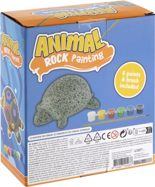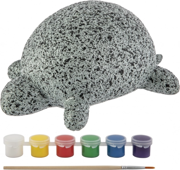 Cutia conține o piatră în formă de broască țestoasă, 6 culori și o pensulă, astfel încât puteți începe să pictați imediat după despachetare. O alegere ideală pentru creații rapide și simple.