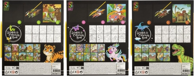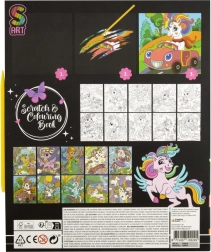 Foile față-verso oferă două activități într-una – răzuire colorată și colorare creativă. Copiii se bucură de mai multe posibilități de creație pe fiecare foaie.