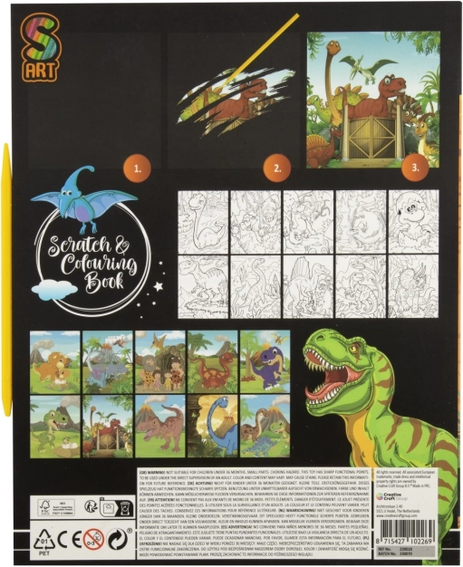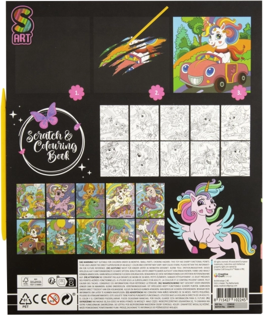 Acest set creativ reunește două activități îndrăgite într-una – răzuire și colorare. Copiii pot mai întâi să răzuiască motive strălucitoare, apoi să coloreze planșele de pe cealaltă parte. Datorită instrumentului din plastic inclus, activitatea este ușoară și sigură.