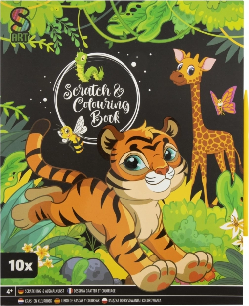 Descoperă distracția creativă pentru micii artiști: set de răzuit și de colorat cu 10 foi față-verso și instrument din plastic. Fiecare foaie oferă pe o parte un desen pentru răzuit, iar pe cealaltă o planșă de colorat. Motive variate, ideal pentru copii 4+, dimensiunea imaginilor 21 × 26 cm.