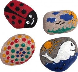Pietricele, hârtie, lemn sau decorațiuni pentru casă – vopseaua acrilică acoperă și strălucește chiar și pe suprafețe mai închise. Înainte de aplicare, curățați suprafața și faceți un test.