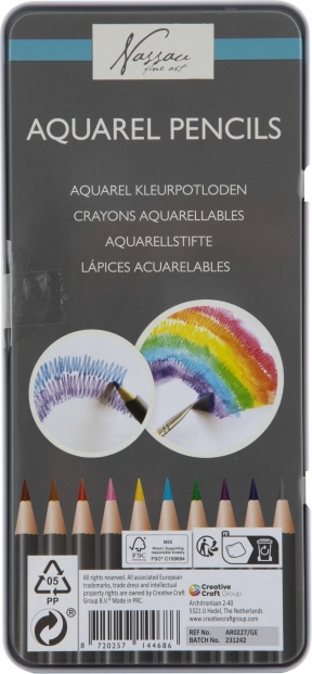 Acest set de creioane acuarelabile îmbină ce e mai bun din două lumi: desenul precis cu creionul uscat și efectele picturii în acuarelă. Motivul desenat se poate estompa ușor cu o pensulă umezită, obținând un aspect acvarelat impresionant fără a avea nevoie de culori clasice.