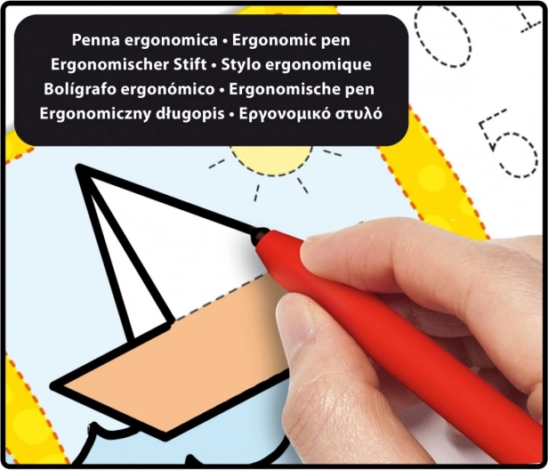 Stiloul Montessori a fost dezvoltat pe baza studiului anatomiei. Are un prindere ergonomică, cu adâncituri speciale pentru degete, care asigură poziționarea corectă a instrumentului de scris. Pachetul include un stilou unic, excelent și pentru copiii care scriu cu mâna stângă.