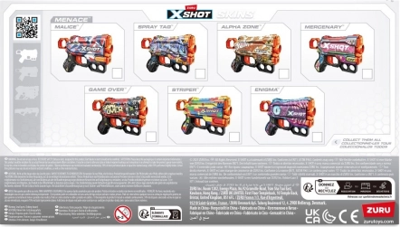 Seria de blastere și lansatoare X-Shot Skins îți oferă ocazia de a personaliza aspectul armei, așa cum o știu copiii și adulții din jocurile video! Lansatorul X-Shot Skins Menace este disponibil în 7 skinuri unice (variante de culoare) din care poți alege. Creează-ți propriul arsenal de aspecte și fii sigur de fiabilitatea blasterului tău la fiecare utilizare! Arma este echipată cu un spațiu de depozitare inferior pentru două proiectile, astfel încât muniția este mereu la îndemână!