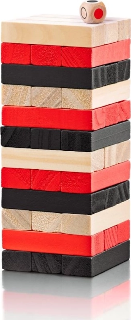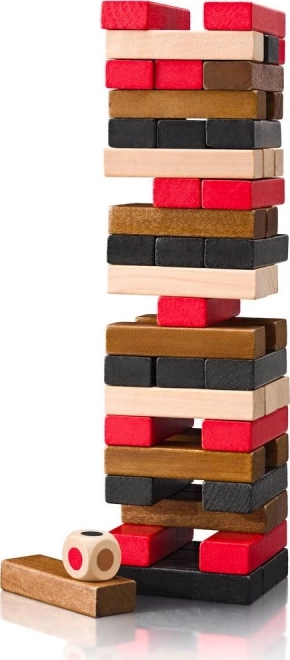 Construiește, extrage și echilibrează. Cărămizile colorate din lemn și zarul adaugă provocări noi și transformă fiecare rundă într-un spectacol palpitant.