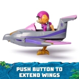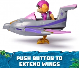 Vehiculul lui Skye, inspirat de un falcon, oferă copiilor experiențe de joc autentice din seria Paw Patrol: Jungla. Printr-o simplă apăsare a părții frontale a vehiculului, activezi transformarea – aripile se deschid, ciocul se deschide, iar ghearele se rotesc pentru o poziție stabilă în timpul acțiunilor de salvare.