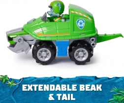 Pornește în misiuni pline de acțiune cu Rocky și vehiculul său transformabil din colecția Patrula Cățelușilor: Junglă. Printr-o singură apăsare, vehiculul trece în modul de salvare – dezvăluie ciocul și coada de țestoasă, care ajută la depășirea obstacolelor. O jucărie excelentă pentru dezvoltarea imaginației și a motricității fine a copiilor.