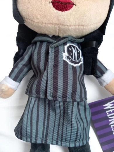 Descoperiți farmecul eroului preferat din serial cu păpușa de pluș stylish Wednesday Addams. Această păpușă de 32 cm este creată fidel cu două costume iconice: uniforma școlară gri Nevermore și rochii negre extravagante, pe care le-a purtat la Nevermore Rave'N Dance.