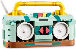 Întoarce-te în timp cu un set creativ care îmbină stilul retro cu distracția modernă. Dintr-un singur set construiești ușor o patină cu rotile atrăgătoare cu roți roz, „șireturi” galbene și opțiunea de a decora călcâiul cu piese colorate – apoi o poți reconstrui într-un skateboard compact sau într-un boombox stilat.