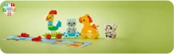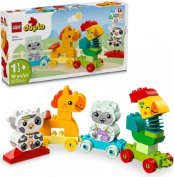 Trenul cu animale LEGO DUPLO îi va încânta pe toți micii iubitori de animale și vehicule. Copiii construiesc cocoșul, calul, oița și văcuța, îi așază în vagoane asortate cromatic și pornesc într-o cursă plină de aventură. Datorită cărămizilor mari, setul se asamblează ușor și susține învățarea prin joacă.