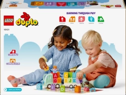 Descoperă învățarea distractivă cu tematică de transport! Lego Duplo camion cu alfabet este ideal pentru copii de la 2 ani: atașează remorca, încarcă cărămizile cu litere A–Z, sortează culorile și formează primele cuvinte. Include stație stereo și cărticică pentru exersarea jucăușă a alfabetului, 2 figurine și piese sigure, ușor de apucat pentru mânuțe mici.