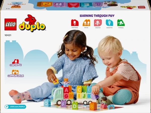 Acest set colorat din gama LEGO DUPLO Oraș transformă învățarea alfabetului într-o aventură distractivă. Copiii atașează remorca detașabilă la camion, încarcă și descarcă cărămizile cu litere și își dezvoltă vocabularul și motricitatea fină. Cărămida stereo și cărticica îi motivează să recite literele împreună cu părinții.