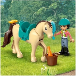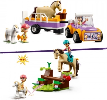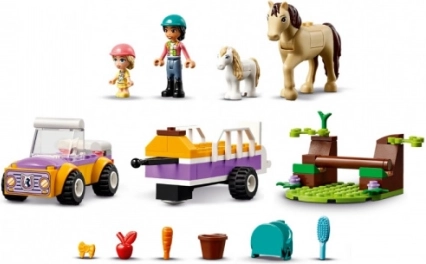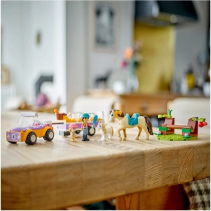 Acest set colorat oferă copiilor tot ce au nevoie pentru o excursie în natură: o mașină cu remorcă pentru transportul calului și poneiului, minifigurinele Liann și Zoi și multe accesorii pentru îngrijirea animalelor. Datorită piesei de start, construcția este rapidă și intuitivă, fiind ideală pentru constructorii mai mici. În plus, aplicația LEGO Builder permite vizualizarea modelelor în 3D și urmărirea progresului.