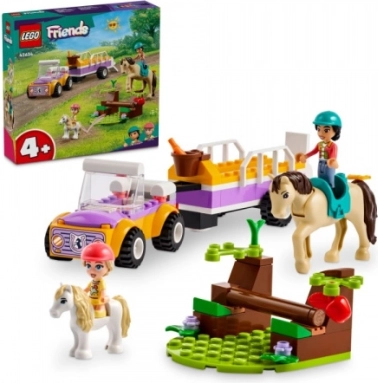 LEGO FRIENDS remorcă pentru cal și ponei: 105 piese, mașină cu remorcă, cal, ponei, Liann și Zoi. Construcție ușoară pentru copii de la 4 ani și joacă creativă.
