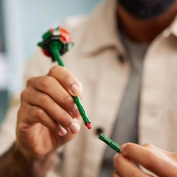 Relaxați-vă asamblând buchetul LEGO care vă va aduce bucurie și un element decorativ frumos în interiorul casei dumneavoastră. Setul conține o duzină de trandafiri roșii – patru complet înfloriți, patru în floare și patru boboci cu tulpini verzi și lungi. Toate acestea sunt completate de patru ramuri de gypsophila cu flori mici și albe. Acest buchet elegant poate fi combinat minunat cu alte seturi din colecția botanică LEGO.