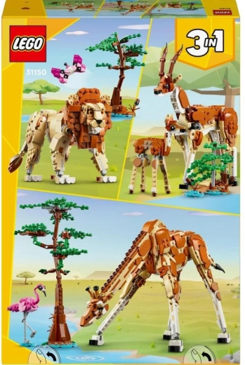 LEGO Creator 3-în-1 Animale de safari aduce o porție grozavă de distracție și creativitate. Dintr-o singură cutie construiești o girafă mândră cu gât lung, poziționabil, un copăcel și un flamingo adorabil. Când e timpul pentru schimbare, reconstruiește modelul într-o pereche de gazele grațioase – mamă și pui – sau într-un leu nobil cu elemente de decor.