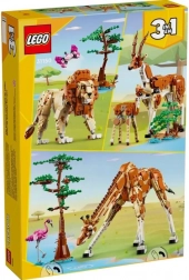 LEGO Creator 3 în 1 Animale sălbatice din safari aduce copiilor lumea variată a naturii africane. Dintr-un singur set de piese, vor construi o girafă impunătoare cu gât lung și articulații mobile, însoțită de un flamenco și un copac. Apoi pot reconstrui modelul cu ușurință în două antilope (mamă și pui) sau într-un leu impresionant – de fiecare dată cu elemente de decor pentru joaca de rol.