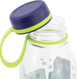 Sticlă practică din tritan pentru băut, cu motiv licențiat MINECRAFT și volum de 650 ml. Oferă un capac din silicon sigur împotriva scurgerilor, este fără BPA și ftalați și ușor de curățat – ideală pentru drum, școală și sport.