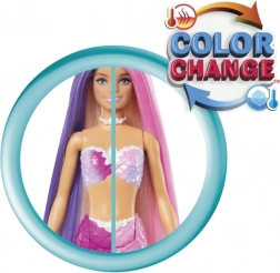Intră în povestea subacvatică alături de păpușa Barbie Malibu inspirată de aventuri magice. Păpușa încântă prin schimbarea culorilor – scufund-o în apă cu gheață și urmărește cum părul, bustiera și coada trec din roz în mov; în apă caldă revin la roz. Efectul poate fi repetat de nenumărate ori.