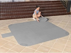 Include și o pătură separată pentru pompă, care asigură poziționarea stabilă și sigură a unității de încălzire/filtrare. Dacă aveți o cadă cu hidromasaj mai mare decât 196 × 196 cm, puteți conecta mai multe seturi pentru a obține suprafața de protecție necesară.