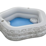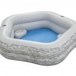 Detaliile bine gândite, precum cele două suporturi pentru băuturi și două perne gonflabile, sporesc confortul în timpul odihnei. Stabilitatea este oferită de două inele uniforme, care păstrează forma și siguranța în utilizare. Volumul de aproximativ 575 l este ideal pentru răcorirea copiilor și adulților.
