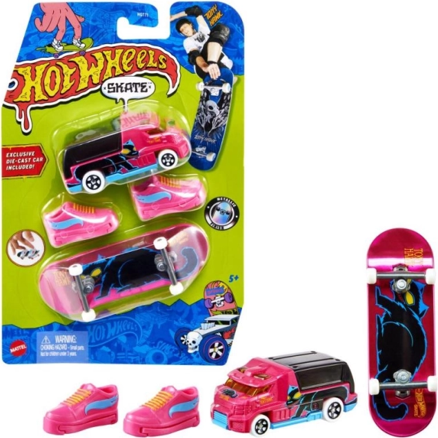 Acest set oferă o combinație unică de fingerboarding și joacă creativă cu un mini vehicul Hot Wheels. Colecția este creată cu atenție la detalii și grafică metalică, care atrage atât copii, cât și colecționari. Mini skateboardul a fost conceput pentru un control ușor, cu pantofi detașabili care ajută la menținerea degetelor ferm pe loc. Seturile sunt ideale pentru copiii cu vârsta de peste 5 ani, care se pot bucura de piese stilizate inspirate de Tony Hawk.