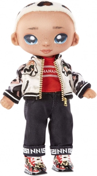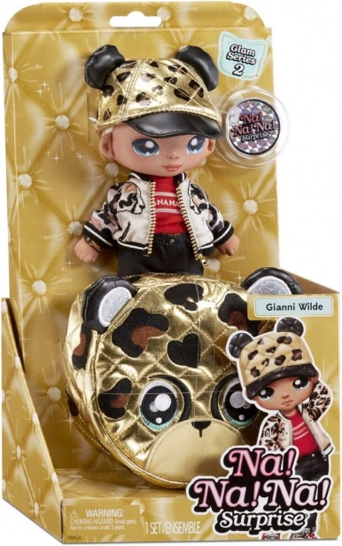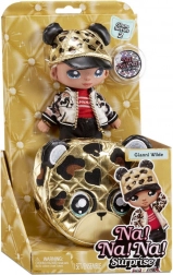 Descoperiți Păpușa Na! Na! Na! Surprise și o geantă stilată 2în1, care combină o păpușă de modă moale cu o geantă plic colorată cu fermoar în stil animal print. Perfectă pentru orice mică modistă.
