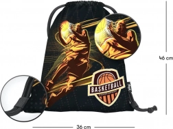 Săculeț sport practic din material rezistent, lavabil, ideal pentru ore de sport, încălțăminte de schimb sau echipament de antrenament. Datorită șnururilor solide se strânge ușor și poate fi purtat confortabil pe spate. Motivul stilat de baschet va încânta toți fanii acestui sport.
