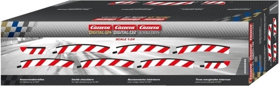 Îmbunătățiți pista CARRERA cu bordurile interioare pentru virajul înclinat 3/30°. Datorită acestora obțineți un profil de rulare mai larg, stabilitate sporită a modelelor și o experiență de cursă mai realistă. Montajul este simplu, iar compatibilitatea precisă cu sistemele de bază CARRERA garantează o extindere fără probleme.