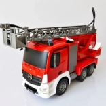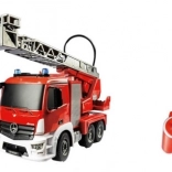 Acest model RC detaliat Mercedes‑Benz Antos este realizat sub licență oficială și oferă copiilor o experiență autentică de joacă. Datorită culorilor vii, construcției rezistente și efectelor funcționale (faruri și lumini spate, girofaruri pe acoperiș) arată și se comportă ca un camion de pompieri real. Rezervorul de apă integrat, cu furtun și pompă, permite stropirea cu apă, în timp ce scara rotativă 360° cu extensie de până la cca 55 cm mărește raza de acțiune.