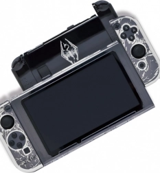 Îmbunătățește-ți Nintendo Switch cu o husă de protecție ce include simbolul iconic al dragonului și aspectul de armură metalică din lumea Skyrim. Husa este proiectată să îți protejeze dispozitivul atât acasă, cât și în deplasare, fără a împiedica accesul la butoane, porturi sau suport.