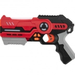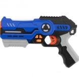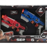 În pachet sunt două pistoale laser – provoacă-ți prietenul și măsurați-vă forțele. Raza de detectare a loviturilor de până la 40 m garantează un joc plin de adrenalină acasă și în aer liber.