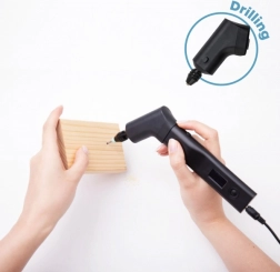 Atașamentul de burghiu pentru stiloul 3D MultiPro transformă dispozitivul într-o unealtă compactă de atelier pentru proiecte creative și hobby. Permite lucrări precise în materiale precum lemn, plastic, aluminiu sau sticlă subțire și este potrivit pentru detalii fine și mici reparații.