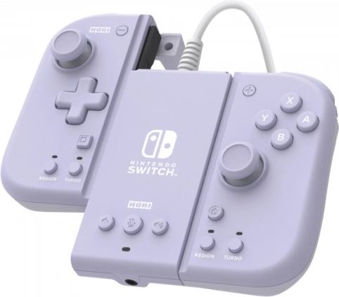 Setul HORI Split Pad Pro + adaptor este ideal pentru jucătorii care vor mai mult confort și precizie acasă și în deplasare. Controllerul se poate separa ușor și conecta în locul Joy-Con-urilor pentru joc în mod handheld sau, cu adaptorul, îl poți folosi ca un controller cu fir la televizor. Finisajul lavandă adaugă stil consolei tale.