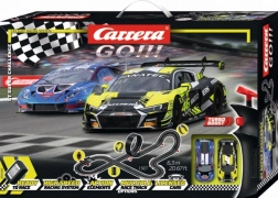 Trăiți la maximum cursele de acasă cu pista Carrera GO de 6,3 m la scara 1:43. Setul include mașini detaliate Audi R8 LMS GT3 și Lamborghini Huracán GT3, looping, intersecție, perete vertical și contor de ture. Datorită controlerelor Turbo, magneților și periilor duble, condusul este rapid și stabil, asamblarea este ușoară, iar distracția pentru copii de la 6 ani este garantată.