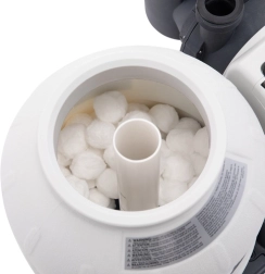 Bilele de filtrare INTEX cu greutatea de 0,5 kg sunt un înlocuitor modern pentru nisipul din filtrele cu nisip. Oferă o filtrare excepțional de eficientă, sunt compatibile cu pompele cu nisip și pot fi spălate și reutilizate timp de până la 3–4 ani. 0,5 kg de bile corespund performanței a circa 18 kg de nisip de filtrare, economisind timp, costuri și energia filtrării.