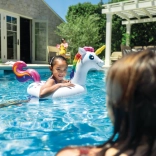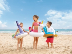 Alege între o lamă veselă, un unicorn de poveste sau un dinozaur jucăuș. Culorile vii cresc vizibilitatea în apă și copiii le adoră.